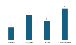 Gráfico: Cantidad de magistraturas sujetas a reelección o sustitución por el nuevo Congreso, según sala